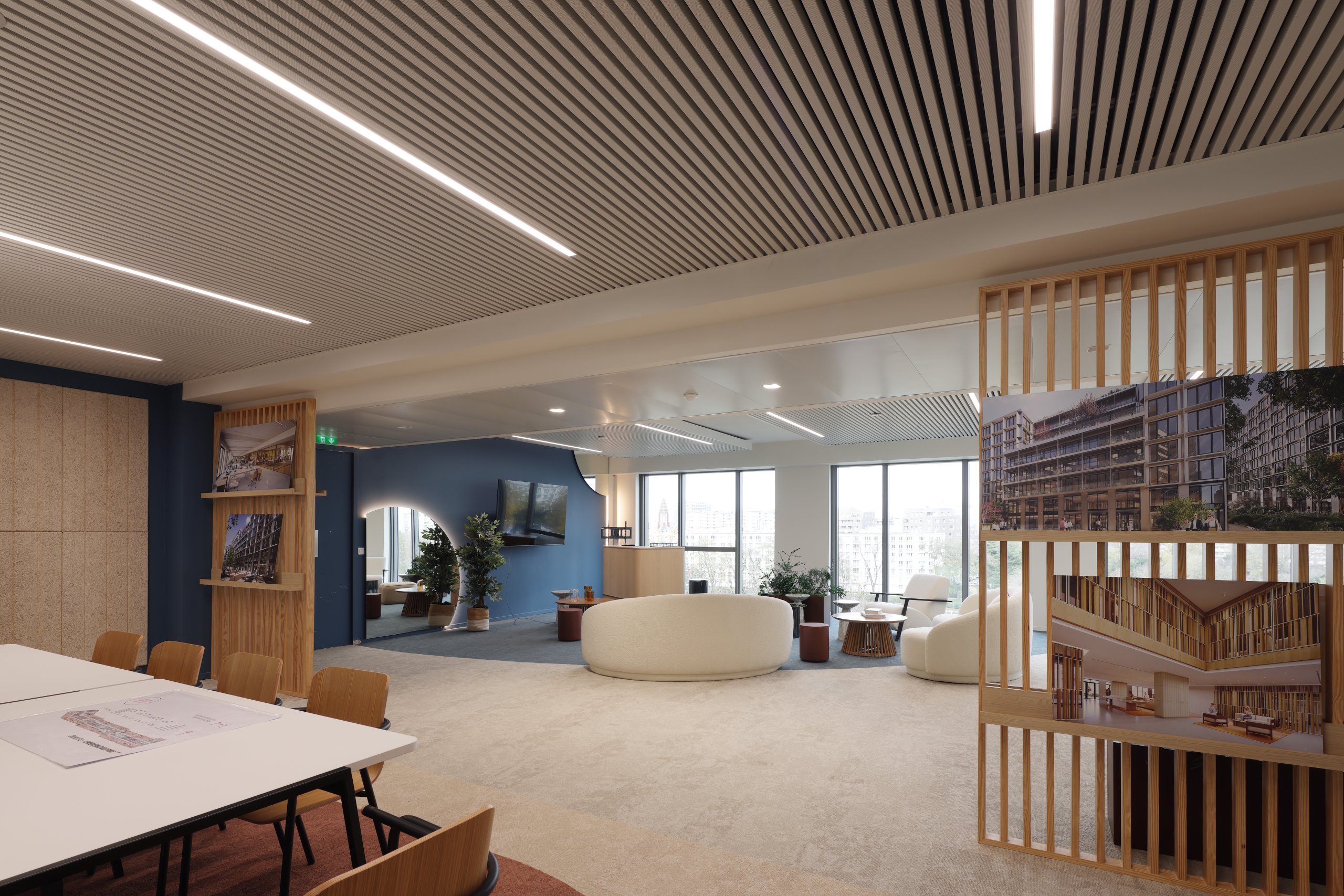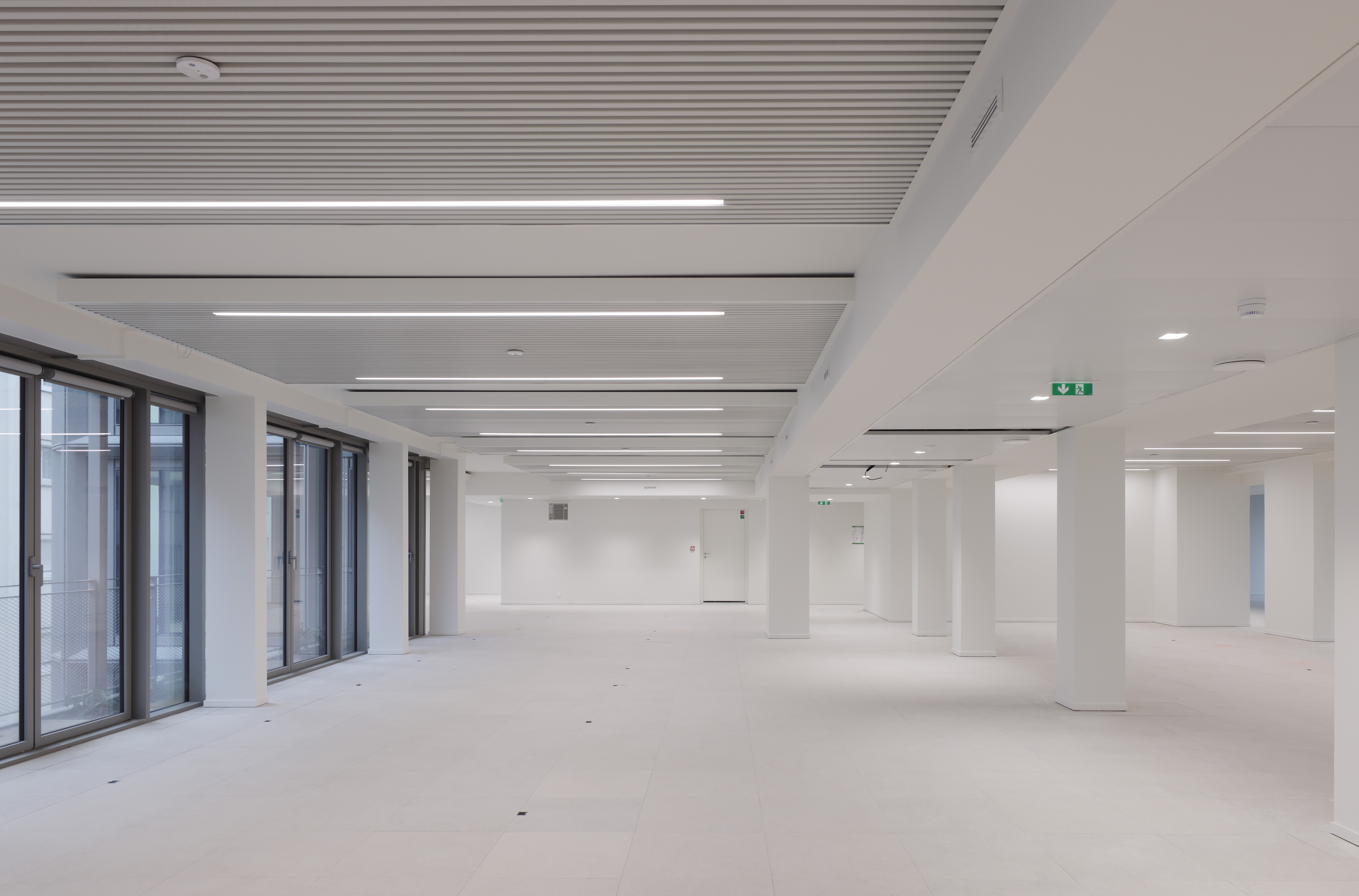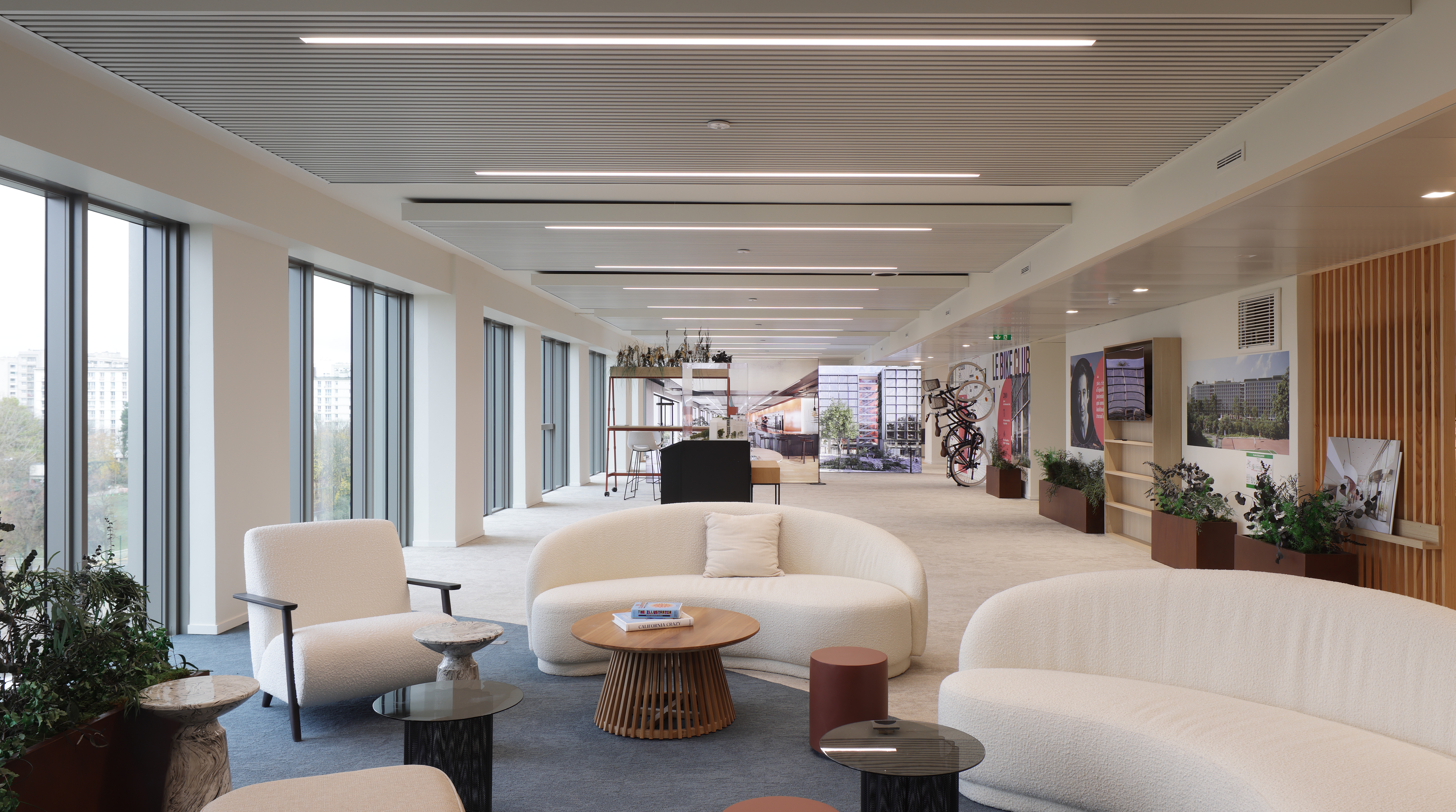 Pour ce projet de 30 000 m², l’ensemble des luminaires bureaux ont été développés pour une intégration précise aux faux plafonds.