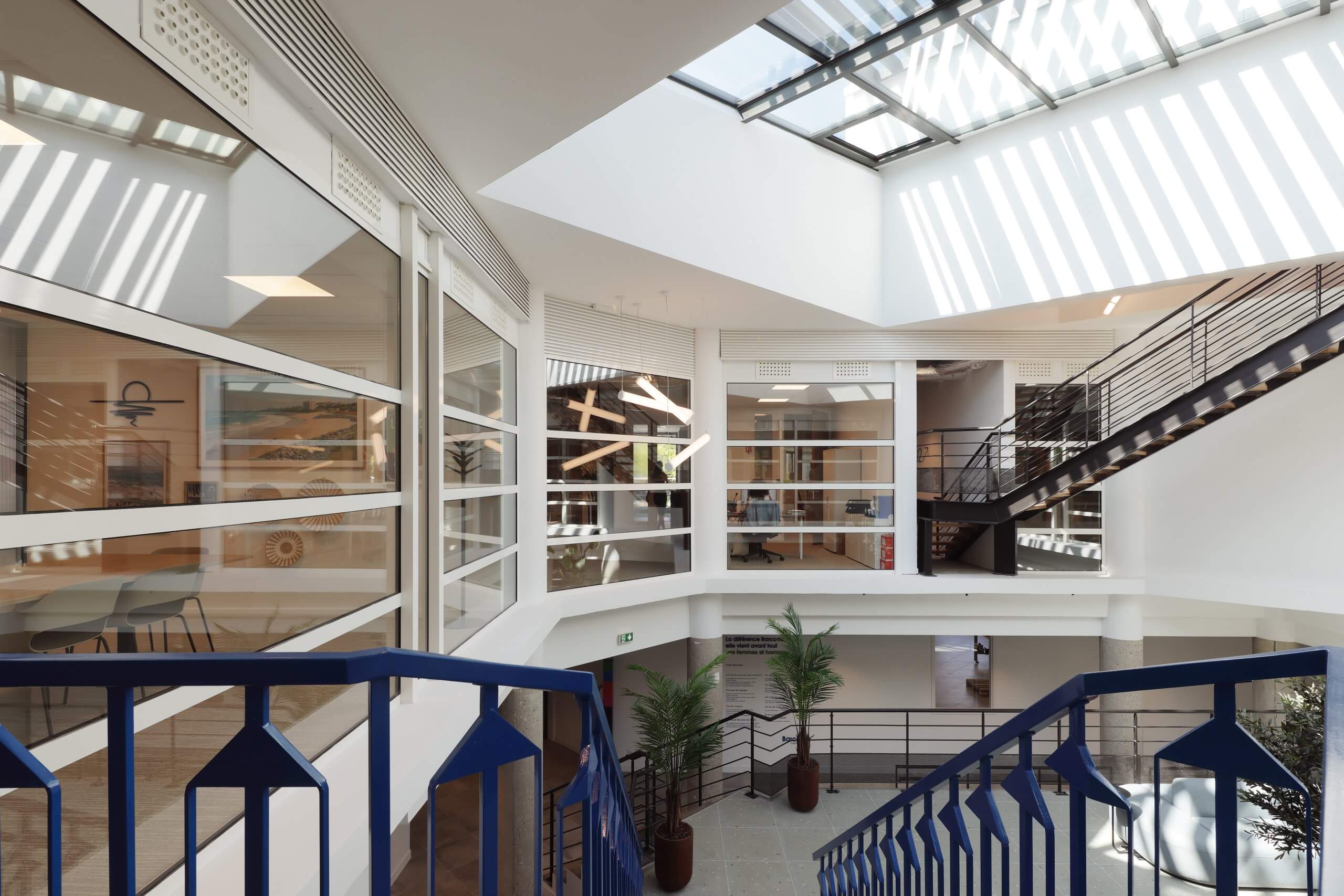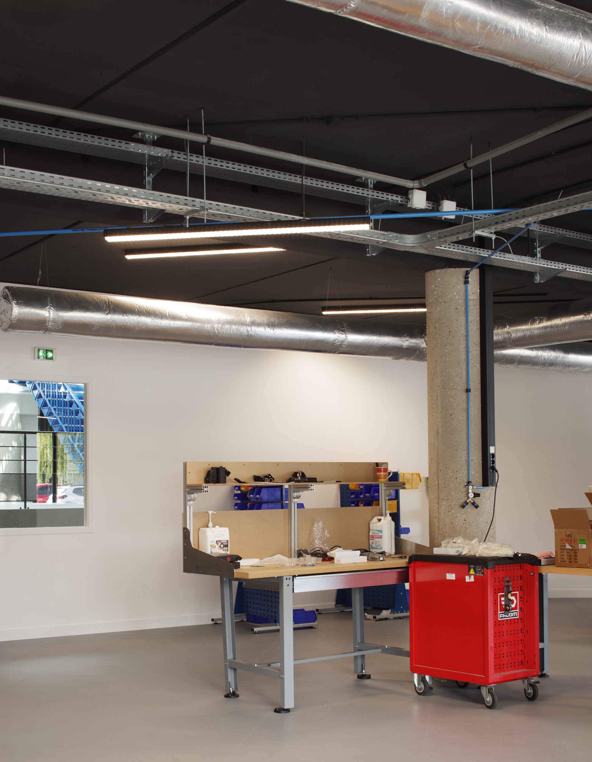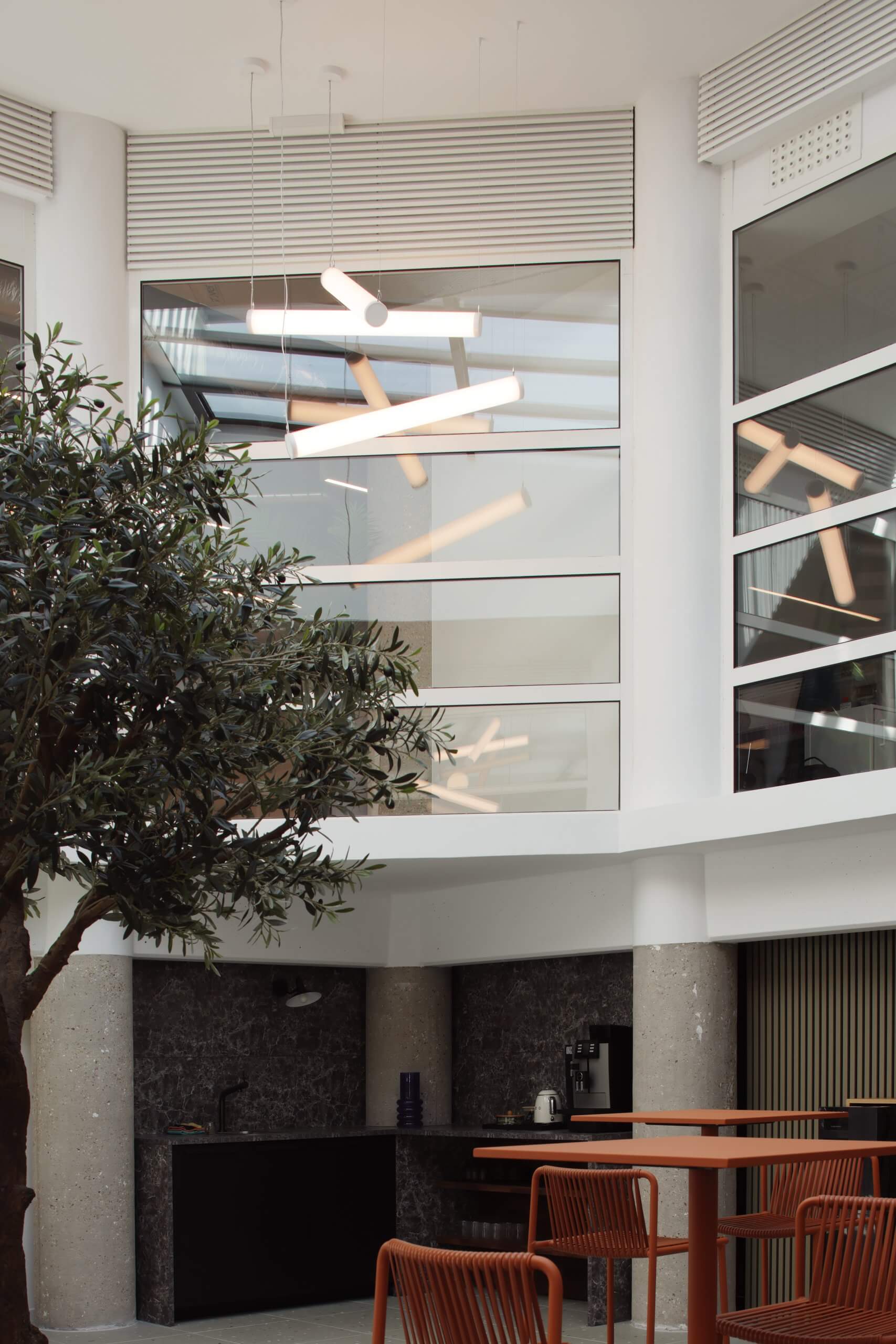 Nous avons accordé une attention particulière au confort des utilisateurs, que nous avons maximisé avec des solutions techniques (optiques, diffuseurs, gestion) permettant également d’optimiser les niveaux acoustiques de certains espaces (co-working).