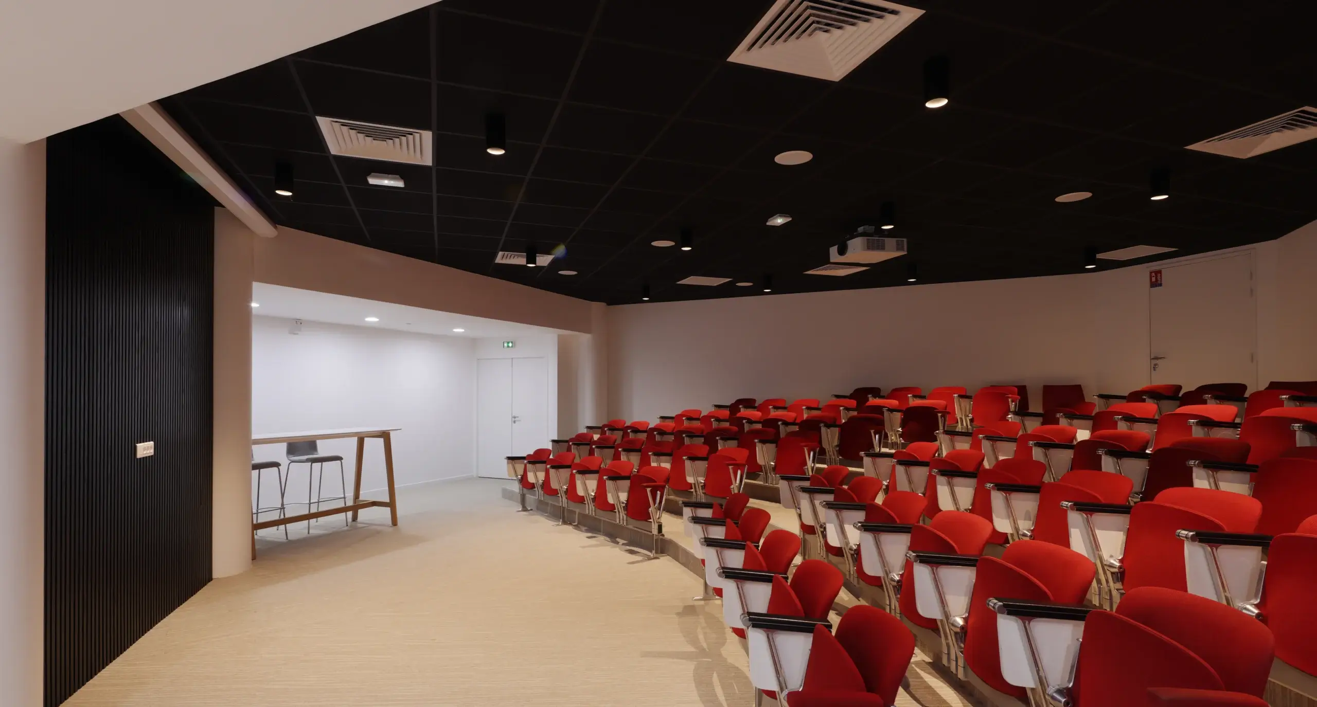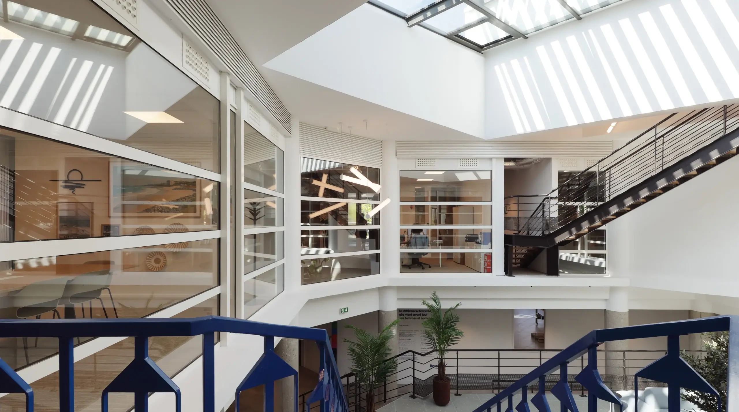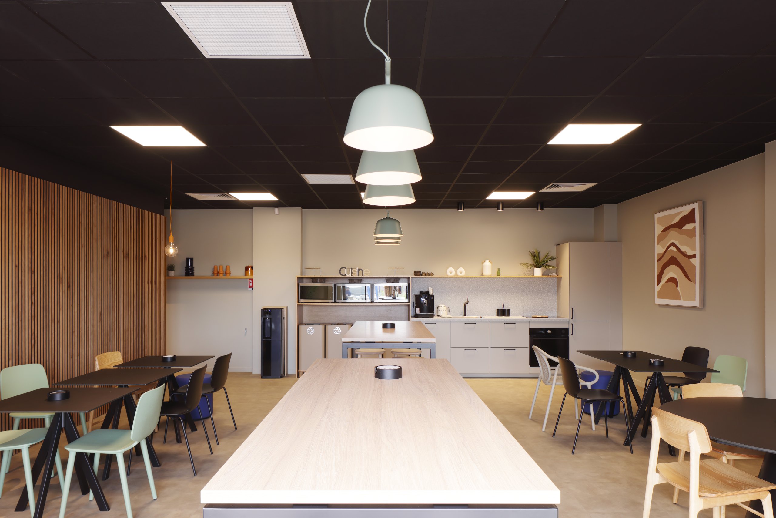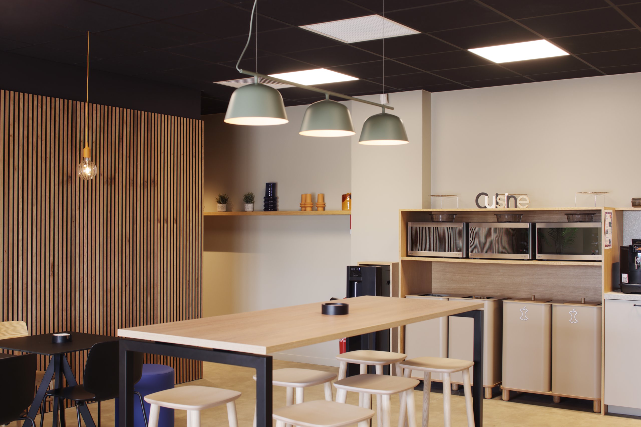 Nous avons accordé une attention particulière au confort des utilisateurs, que nous avons maximisé avec des solutions techniques (optiques, diffuseurs, gestion) permettant également d’optimiser les niveaux acoustiques de certains espaces (co-working).