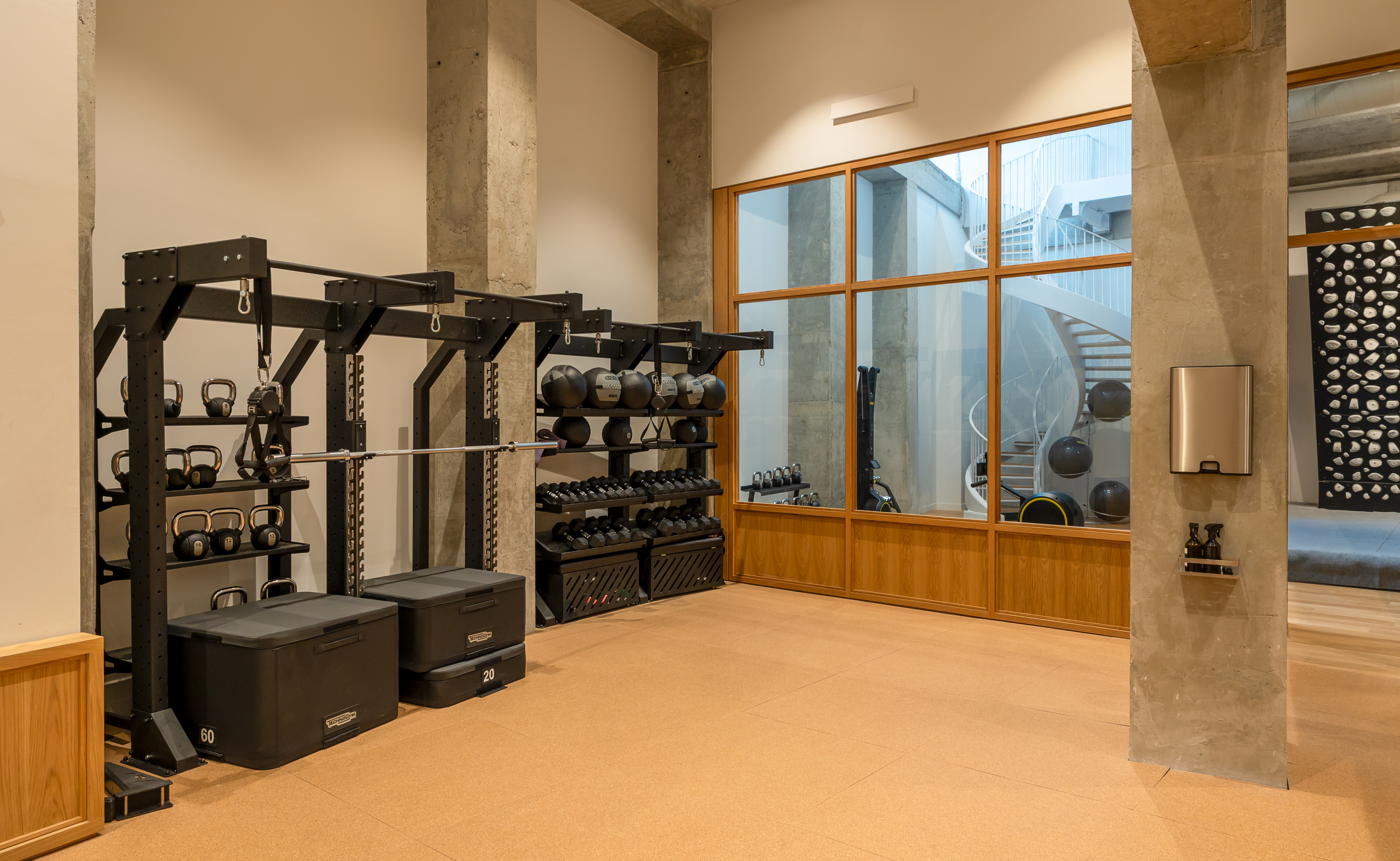 Pensé comme un lieu dédié au bien-être et à la performance, cet espace offre une atmosphère à la fois apaisante et stimulante, en parfaite adéquation avec sa vocation sportive.